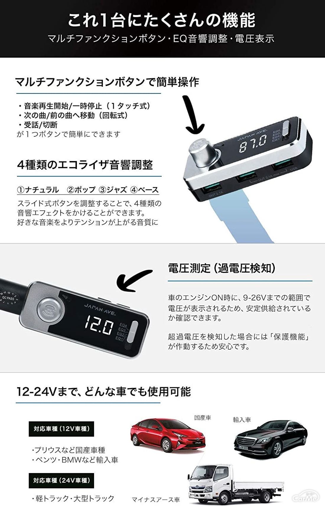 楽天市場 意匠権取得 最上位モデル Fmトランスミッター Bluetooth 5 0 高音質 Iphone Ipod 無線 カーチャージャー シガーソケット Japan Ave Fm トランスミッター 有線接続 Aux In Out X 11 Max Usb 12v 24v ブルトゥース ウォークマン 音楽 Ipad